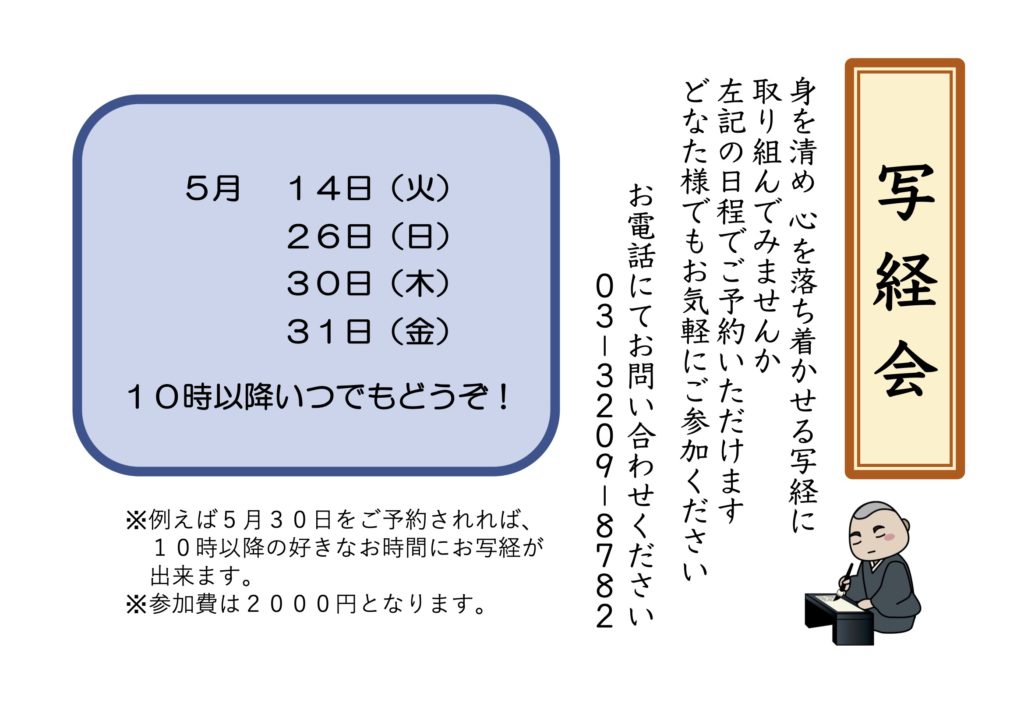 令和6年5月写経会のスケジュールです。