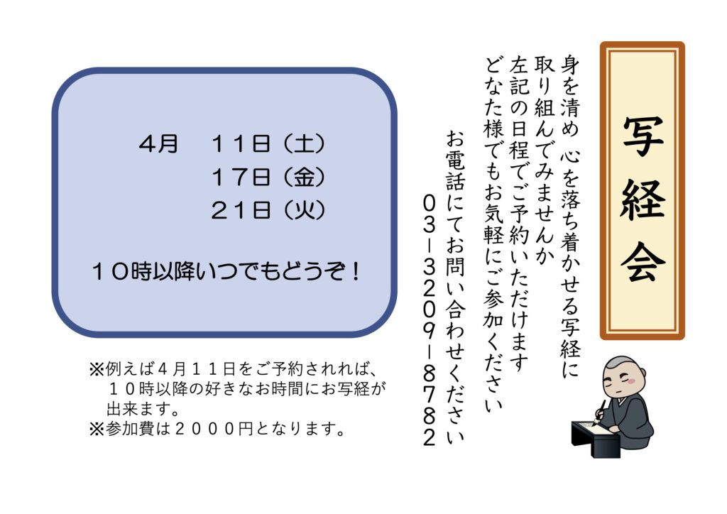 令和8年4月写経会のスケジュールです。